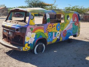 Moins sympathique, le nombre impressionnant de carcasses d’animaux qui jonchaient les highways jusqu’à présent a été remplacé par un nombre tout aussi impressionnant de croix ou petites chapelles. Sans commentaire. Les routes sont aussi jonchées de détritus en tout genre, surtout en plastique. Sacs, bouteilles usagées (trop souvent remplies d’un liquide jaunâtre que je vous laisse deviner…).