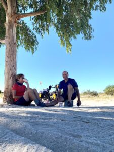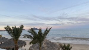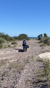 Nous devons être prudents ; le changement horaire et la latitude, la première semaine dans la Baja, nous rappellent que le soleil se lève encore relativement tôt (à 8h, il fait déjà aussi 20 degrés) et se couche tôt ; nous devons commencer à réfléchir/rechercher un logement déjà à partir de 14h. A 16h30, il fait nuit et la température a bien chuté. Depuis l’entrée dans la Baja Sud (la Baja est divisée en deux provinces, Nord et Sud) et le passage du 28ème parallèle, nous avons « récupéré » une heure ; donc le soleil se re-couche plus tard (17h30/18h) (et se lève plus tard) ; et comme notre horaire est calqué sur celui du soleil, nous sommes plus en phase avec notre rythme biologique (il faut avouer que dans la Baja Norte, nous nous étions un soir couchés à 19h…).