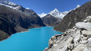 Et last but not least, après notre descente sur Caraz et avant de sortir du parc, nous troquons nos vélos pour une randonnée vers la Laguna Paròn, un écrin d’un bleu étincelant au pied du glacier.