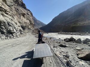Nous quittons l’asphalte après deux jours et retrouvons la piste pour les jours suivants. Nous restons rivés sur quelques chiffres, qui s’adaptent en fonction du terrain, du dénivelé, de l’ensoleillement, etc. Nous ne raisonnons plus en vitesse moyenne ou en kilomètres, nous le faisons en dénivelés. Et les panneaux solaires nous font exprimer des quantités de volts/ampères. Nous tentons d’éviter de trop « chauffer », ce qui induit alors la contrainte de s’arrêter, attendre que la machine refroidisse, … et que nous récupérions notre souffle. Nos discussions chiffres s’expriment par demi mots, et nos dialogues se résument à :