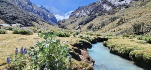 Nous sommes au cœur de la Cordillère Blanche. Tout ici se vit au rythme de la montagne et de ses lagunas. La lumière et le bleu du ciel sont magiques et se reflètent sur les sommets enneigés. Après quelques jours de repos, et les désormais habituelles « mises à jour » (sommeil, d’abord, lavanderia et autres démarches ensuite), nous reprenons la route du Parc National du Huascaran, pour une boucle de 250 km au cœur de ce joyau. Nous retrouvons la tranquillité de la campagne. Nous mesurons combien ces mois passés en permanence dehors ont transformé notre regard et notre rapport à la nature.