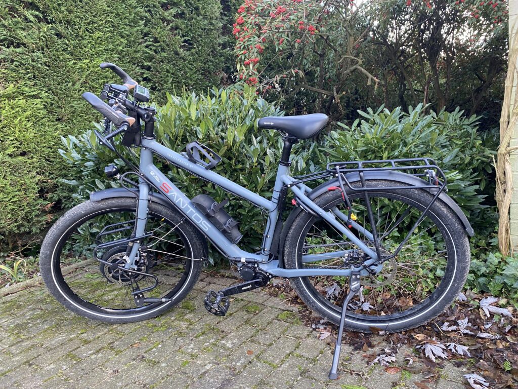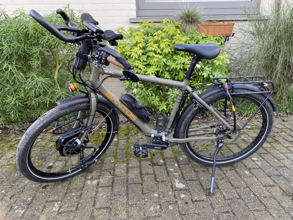 Multiples raisons nous ont poussées à opter pour deux vélos séparés pour ce grand voyage. Après de nombreuses recherches pour trouver notre perle rare, le vélo Santos Travelmaster 3+, équipé d’une boîte de transmission Pinion (18 vitesses) a été choisi pour sa robustesse et sa fiabilité.